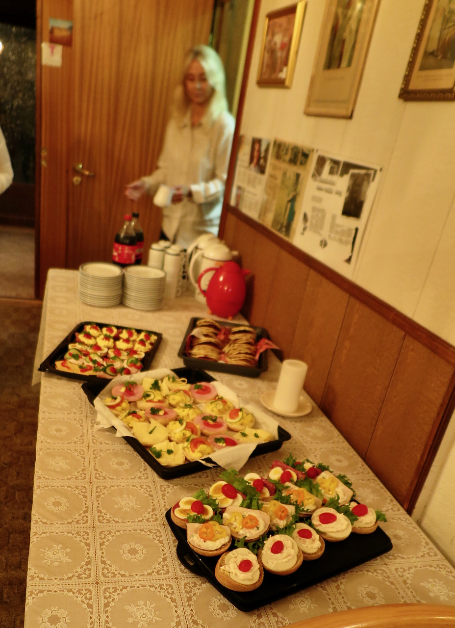 Avsluttet med Smørbrød, Sveler og kaffe.
