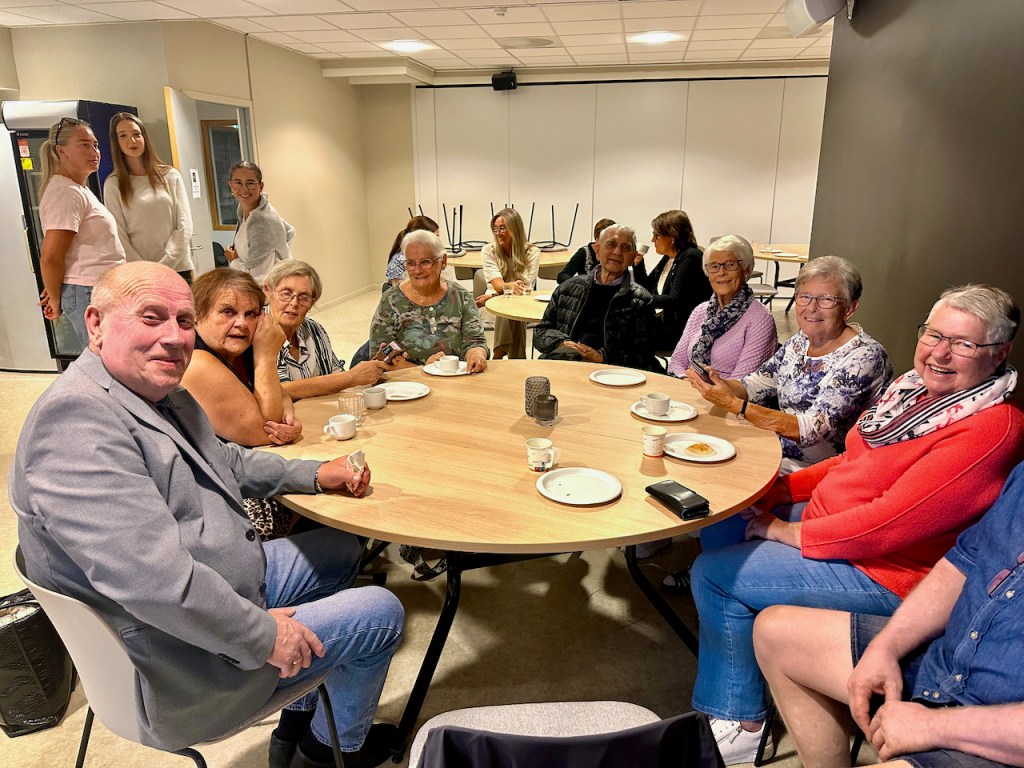 Vi øver to ganger i måneden, veldig sosialt med kaffe og noko attåt.